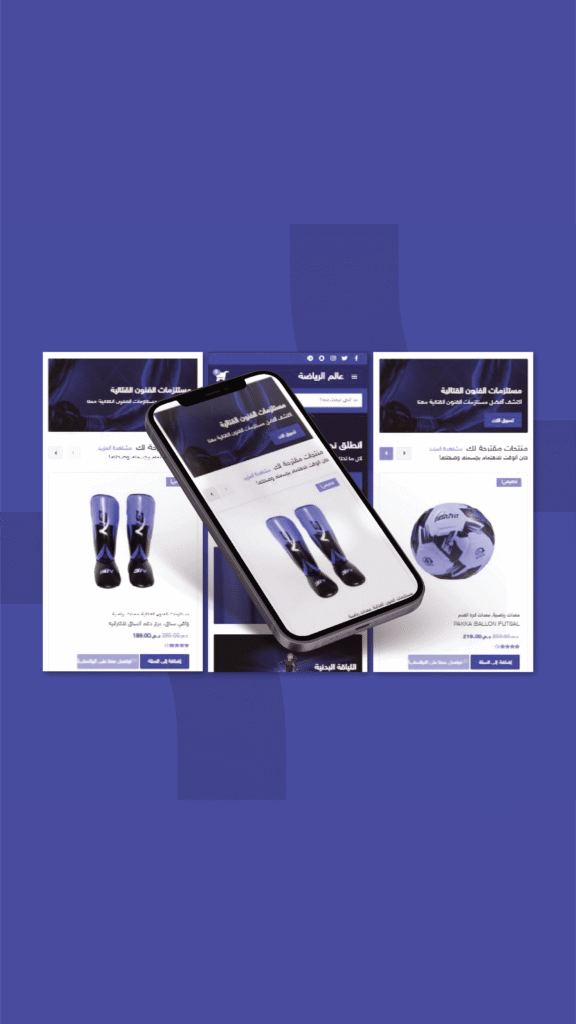 كجزء من المشروع، تم بناء متجر إلكتروني حديث وسريع الاستجابة يُلائم تمامًا طبيعة السوق الرياضي: